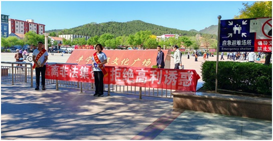 近日,阳光财险丰宁支公司积极参加由承德丰宁监管支局在丰宁民族文化广场组织的防范非法集资集体宣传活动。
