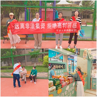 为增强防范非法集资宣传效果,让更多的社会公众得到防范非法集资知识的普及,平安人寿承德中支利用各种资源开展了形式多样的宣传活动,其中包括:柜面海报机播放防范非法集资宣传海报,职场内醒目位置张贴远离非法集资的相关海报条幅,在小区、商超附近开展户外宣传活动,认真、耐心的与每一位咨询者进行讲解、沟通,在提升非法集资风险防控责任意识上取得了良好的效果。