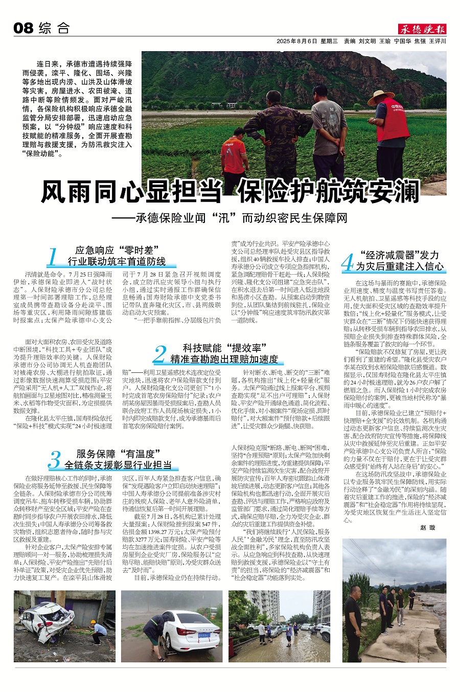 承德晚报刊登《风雨同心显担当,保险护航筑安澜 承德保险业闻“汛”而动织密民生保障网》